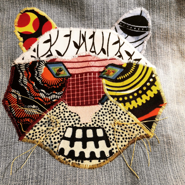 Collage Textile Tigre : création originale avec mes précieuses chutes de tissu. Cousu machine et rebrodé à la main (20h de travail - dessin, création du patron, recherche des chutes, découpage et collage, couture machine, broderie main)